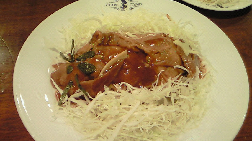 ここは写真を撮るのに許可が必要で、撮る度にメイドさん呼ばなあかんので、パスタの写真は友達が撮って、後で俺が撮ったブタモグラの写真と交換しようって言ってたんだけどスッカリ忘れてた。